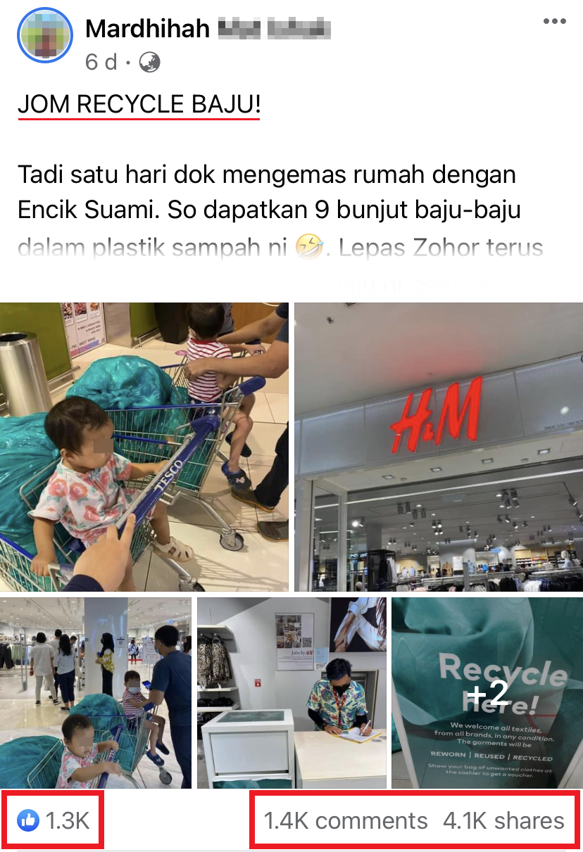 刚才在 TikTok 分享相关视频,2小时内点播率就将近50,000次,我以为大家都知道 H&M 可以回收衣服,现在才发现原来还有很多人都不知道,很多人都是把旧衣服丢掉,很可惜。