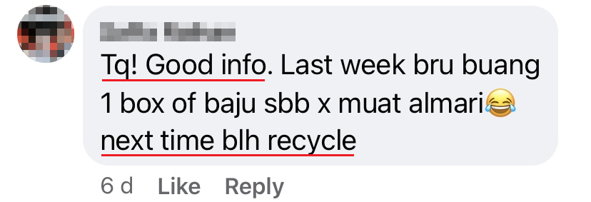 答案 ③ :据我所知,马来西亚的每一家分行都可以回收衣服。