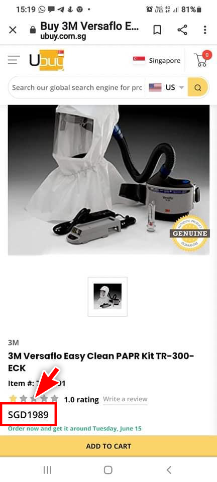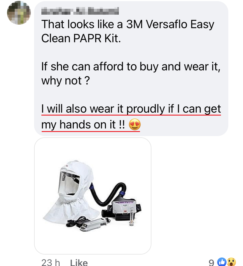 ▼ 很多人都感到很好奇,这究竟是什么玩意儿?来,揭晓答案吧!它是来自 3M 的一款“动力式呼吸防护具” 3M Versaflo TR-300+,可防护颗粒状污染物,应用于颗粒状污染物的环境。注意它的价钱,一组价值新币1,148(约 RM3,590)!