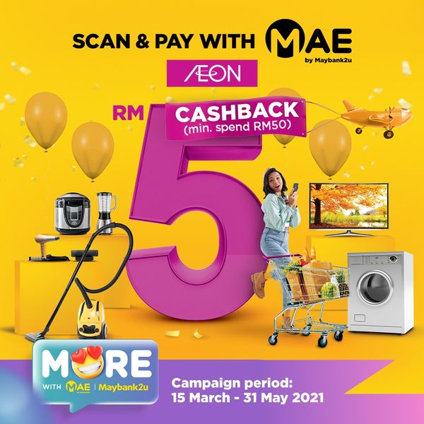 ▼ 在Aeon 消费RM50,可获得RM5 现金回扣(可获高达RM15)