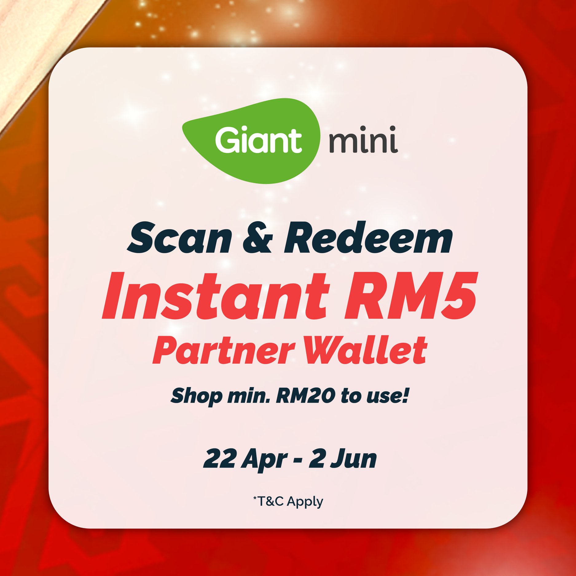 - 用户可在Giant 超市获得2次RM8 现金回扣(高达RM16 现金回扣)