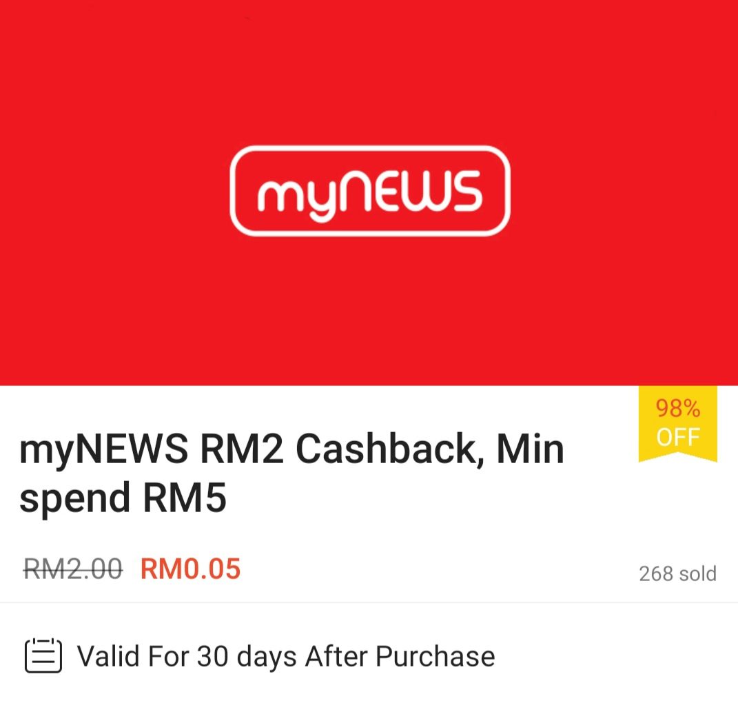 ▼ 在Shopee 购买myNEWS 礼券可获得高达RM5 回扣;购买【点击这里】