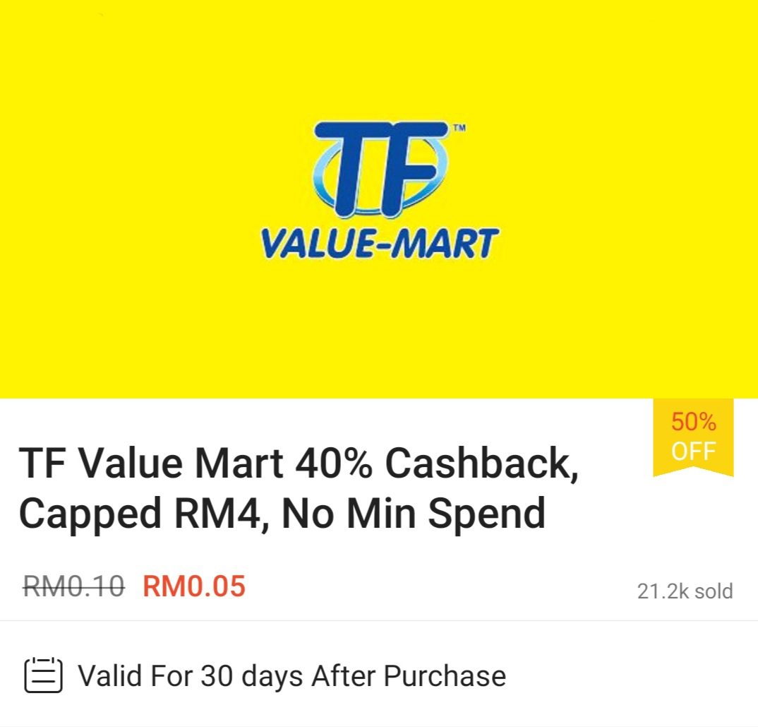 ▼ 在Shopee 购买TF Value Mart 礼券可获得高达RM4 回扣;购买【点击这里】