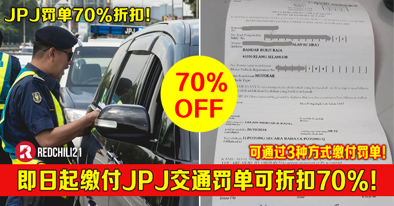 所有在1987年陆路交通法令、商用车辆执照局法令和陆路公共交通法令条文下所开出的罚单,都可享有高达70%的折扣优惠。受惠者包括了被列入黑名单的交通罚单。