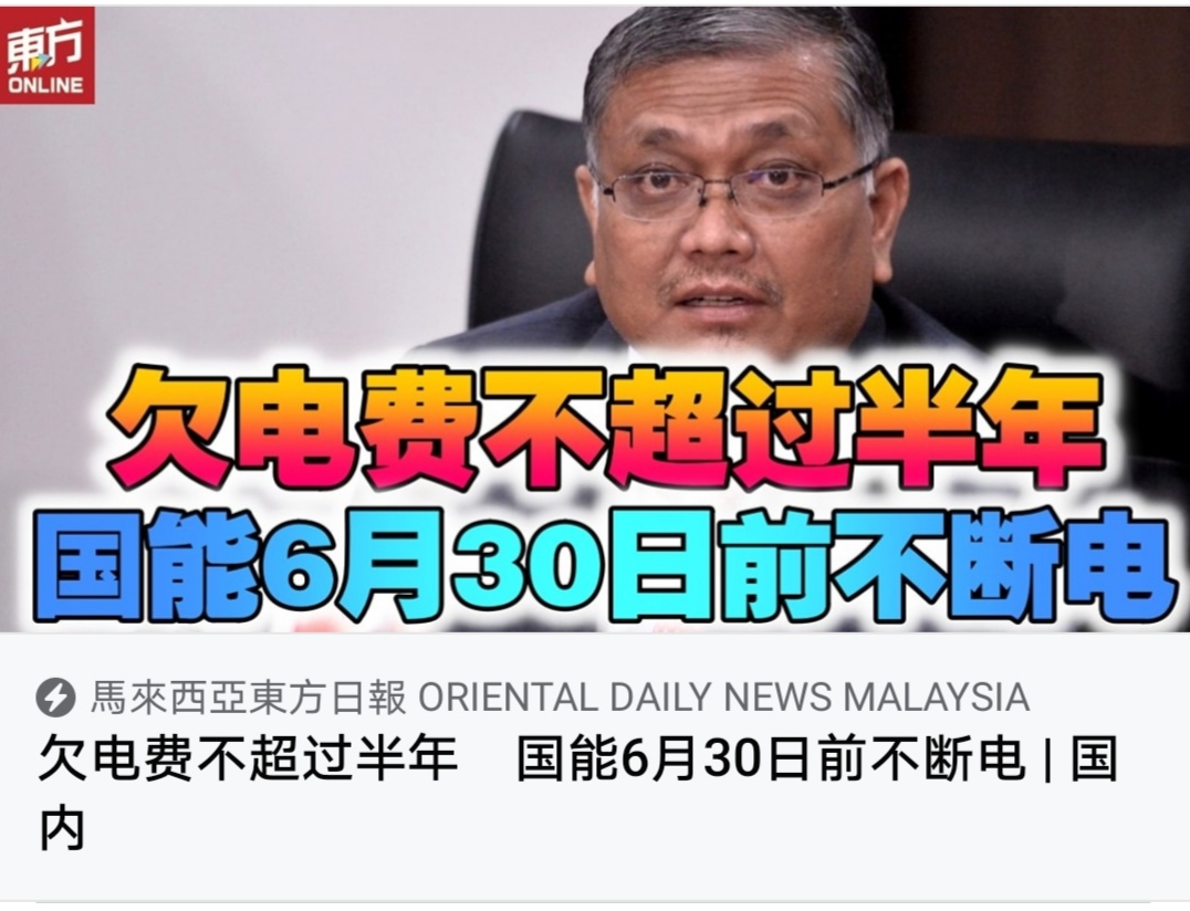 政府与国能(Tenaga Nasional)配合,允许拖欠电费不超过6个月的半岛家庭住户,电供不被切断,直到6月30日为止。