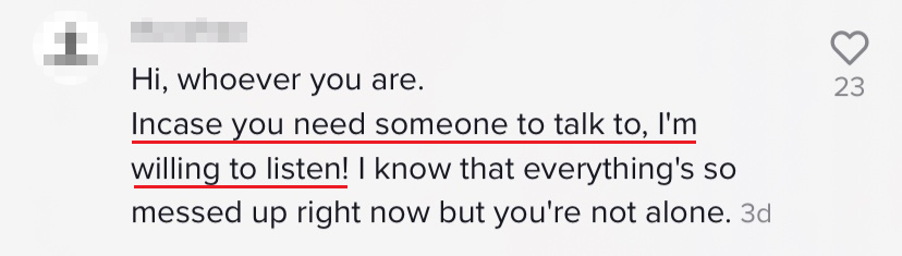 ▼「我知道此时此刻的你一定很伤心,我愿意听你诉苦。」
