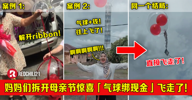 近日 TikTok 流传两段母亲节惊喜的视频,他们双双都为妈妈们准备了最近很流行的“气球绑现金”,结果妈妈还在感动着拆线,气球就带着钞票“远走高飞”了!惊喜变成别人的了!