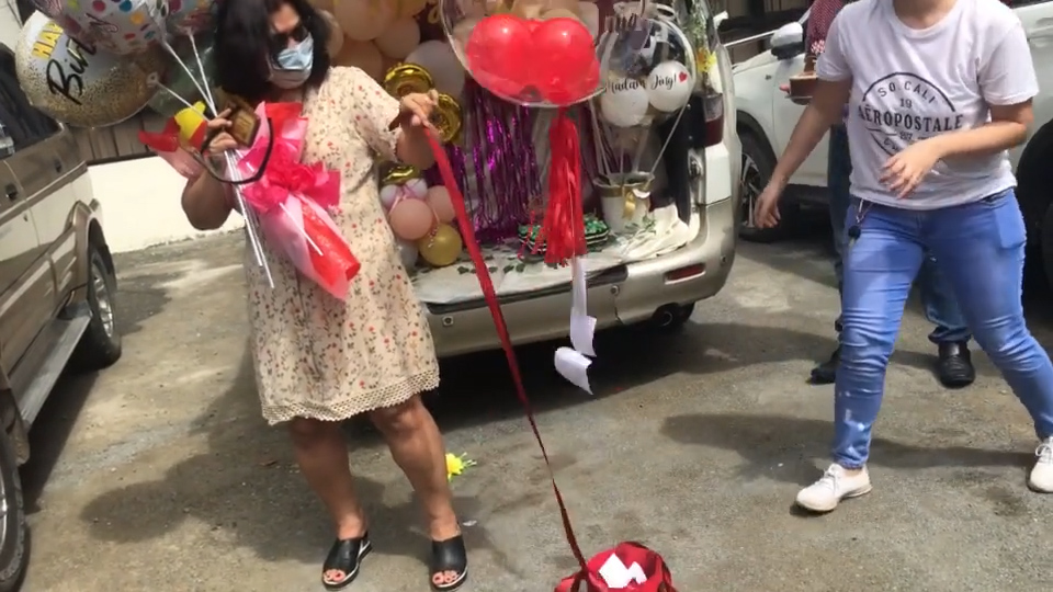 ▼ 短短的视频中,妈妈收到的母亲节惊喜除了有蛋糕、气球,还有一个“开箱气球”解开蝴蝶结拆开惊喜!