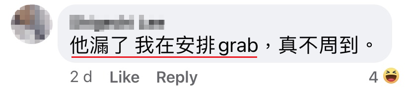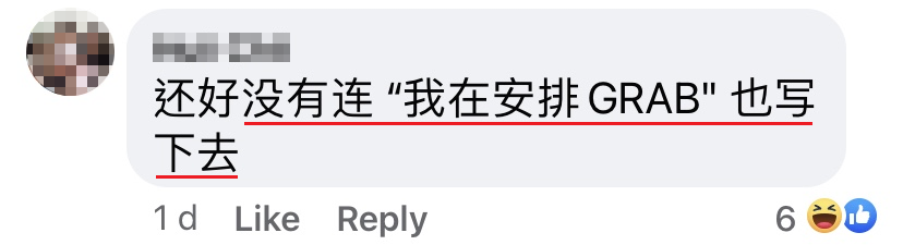 ▼ 好彩没有把“我在安排grab”这一句话也写进去!
