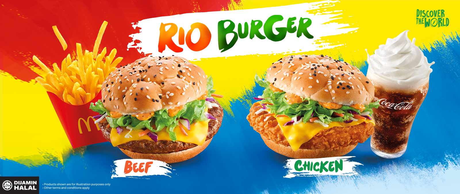 充满巴西风味的 Rio 汉堡系列又回来啦~你可以选择多汁的牛肉或香脆的鸡肉馅饼,再加上五颜六色的混合蔬菜和特殊的 Rio 酱汁。