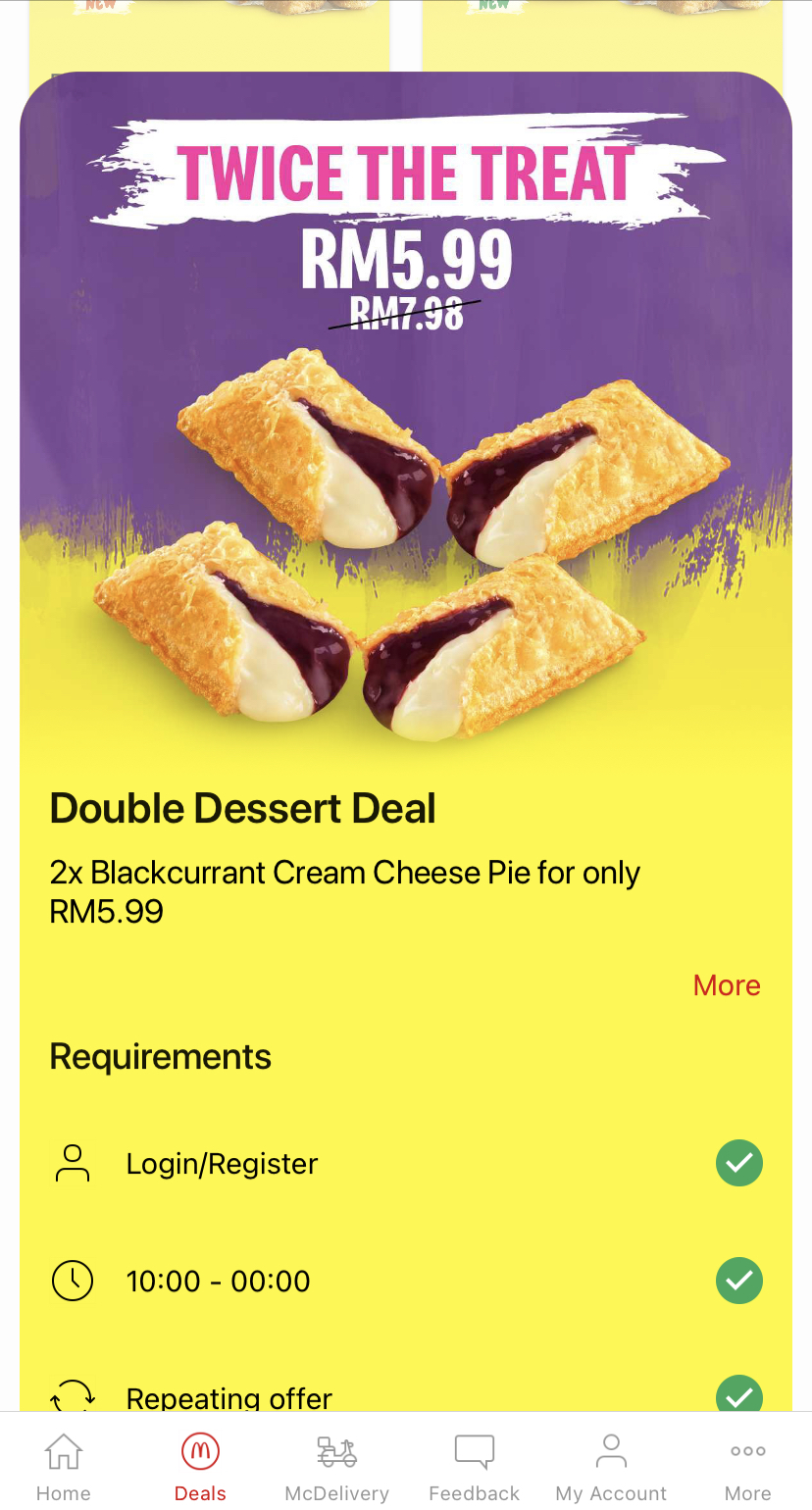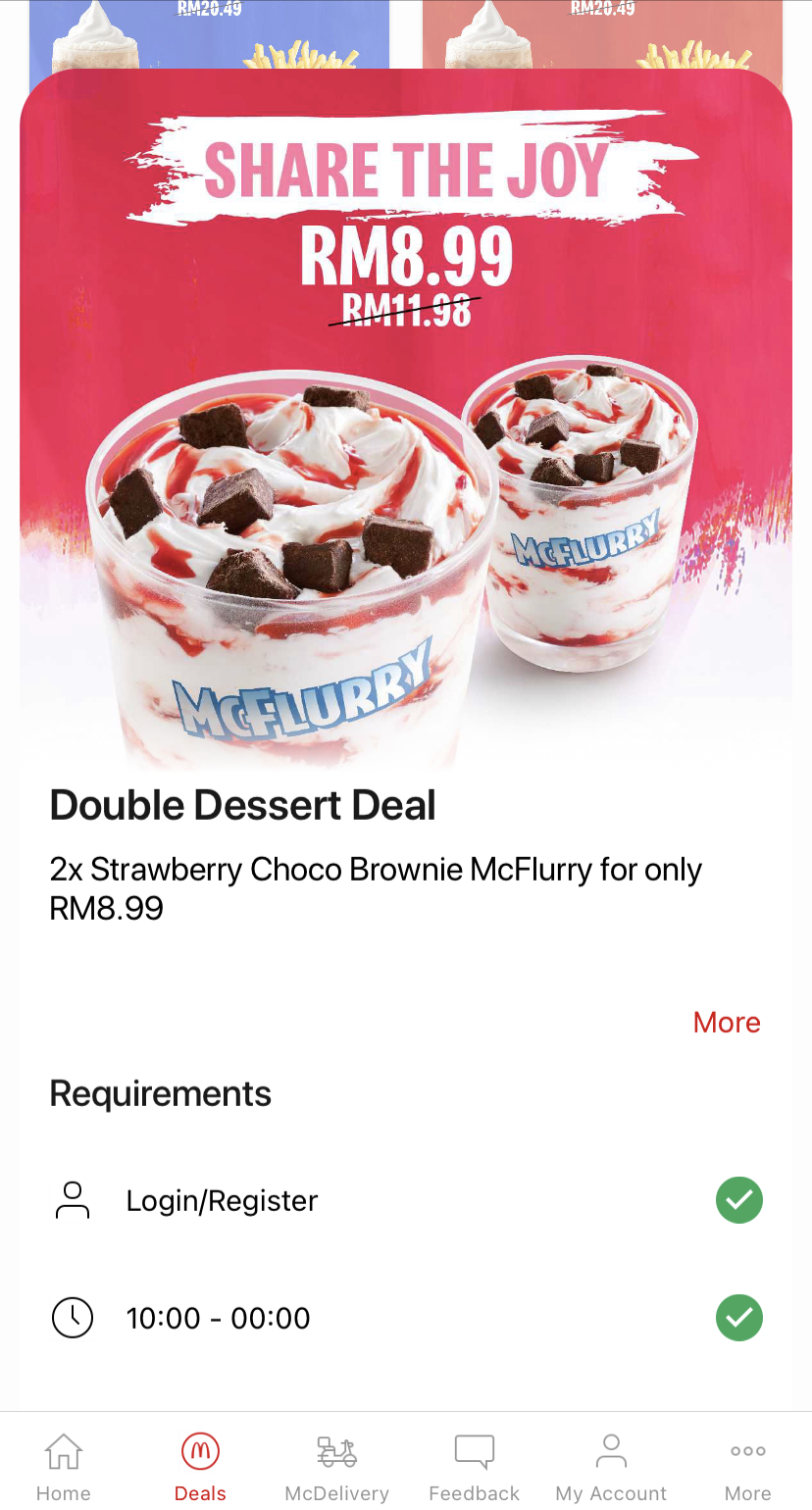▼ 即日起,通过麦当劳 App 还可享有更便宜的优惠价!2 份 Strawberry Choco Brownie McFlurry 原价 RM11.98 现在只需 RM8.99!