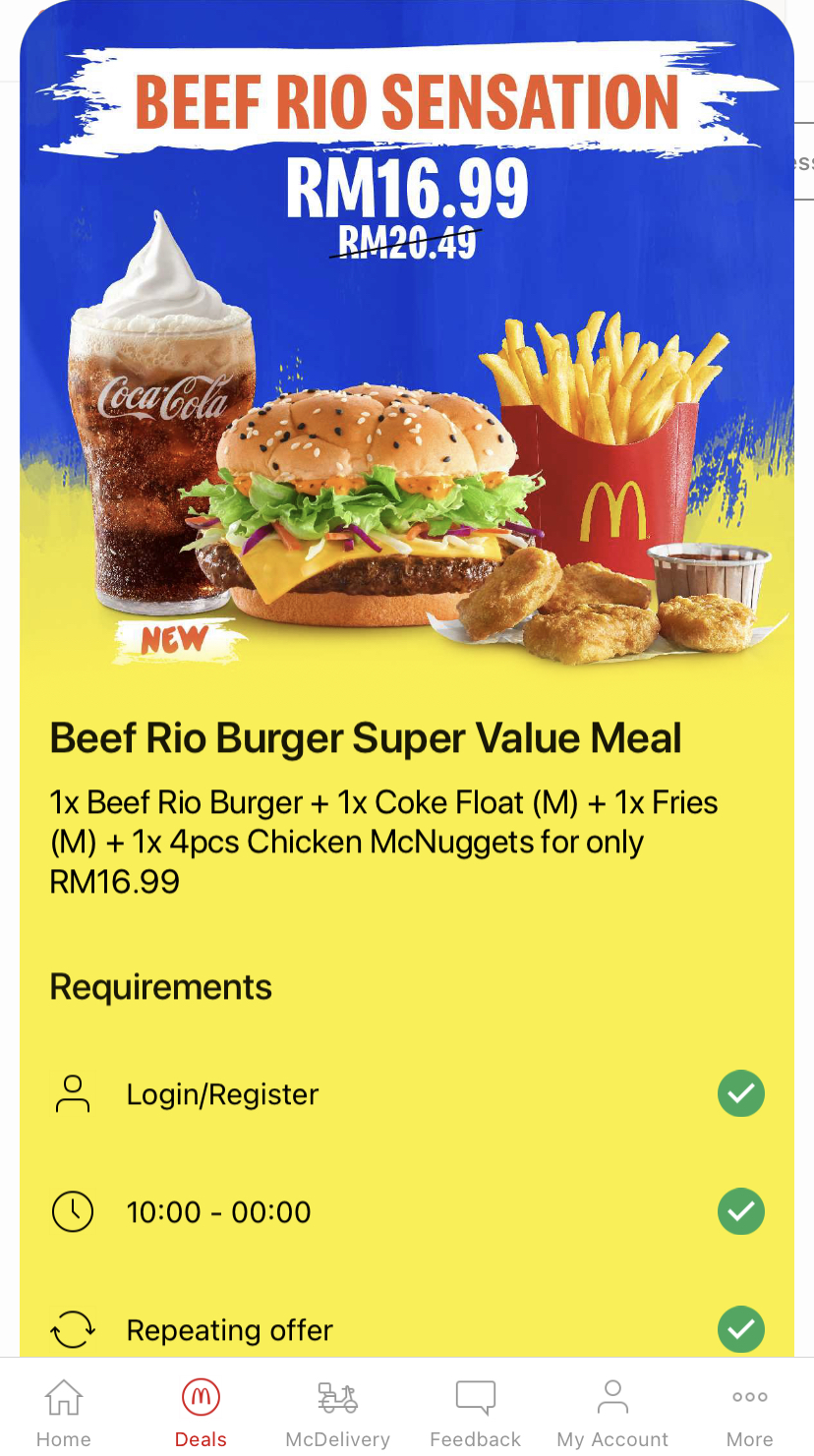 ▼ Beef Rio Sensation 套餐,原价 RM20.49 现在也只需 RM16.99!