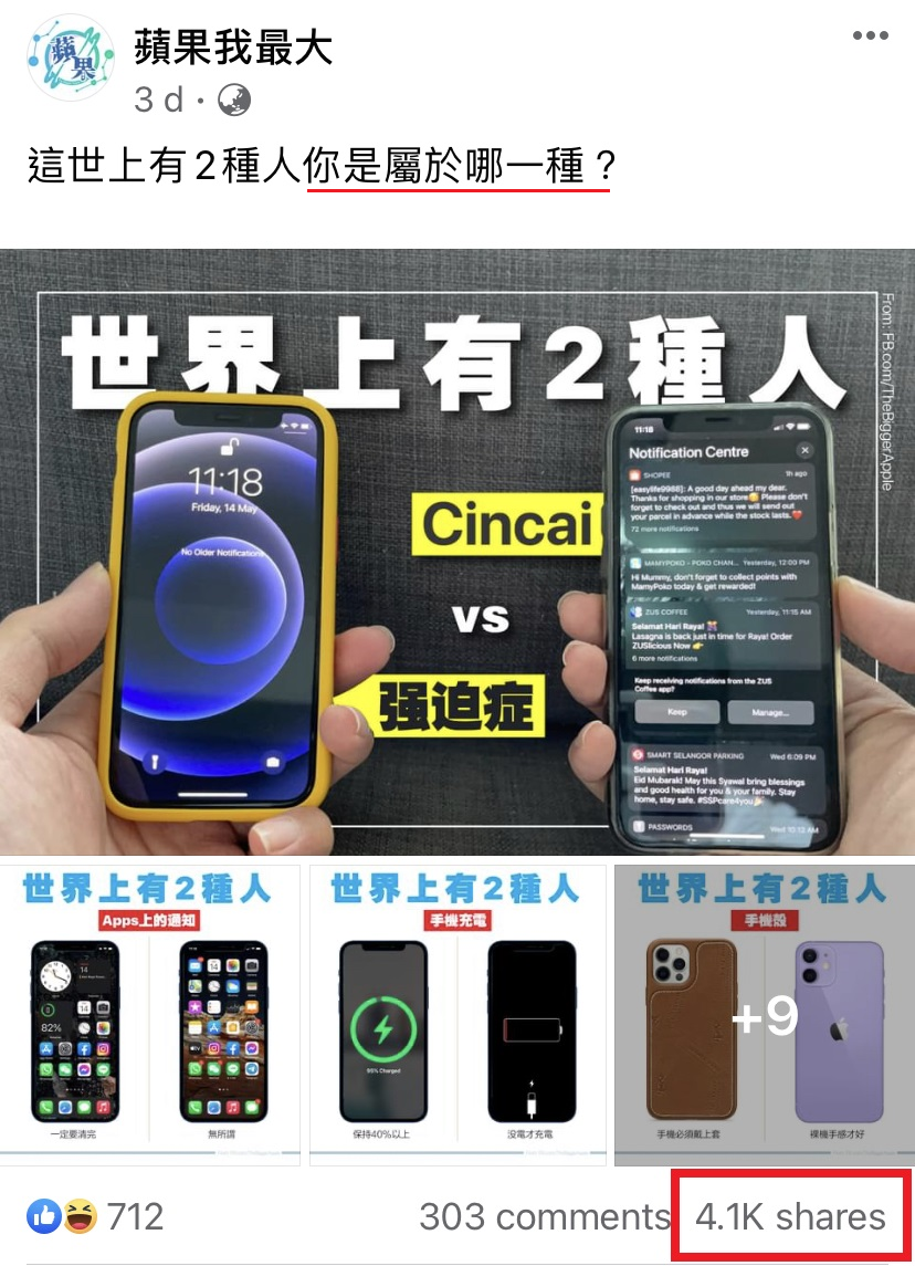 近日,脸书专页“苹果我最大”就列出2种不同使用方法的手机用者,分别是“强迫症”VS“Cincai型”,果然很多人都被说中了!