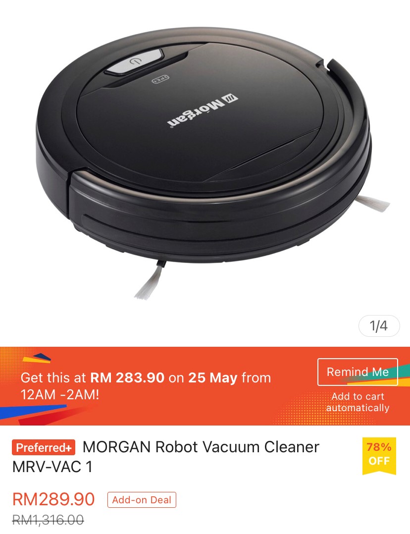 ▪ MORGAN Robot Vacuum Cleaner MRV-VAC 1 – 原价RM1316