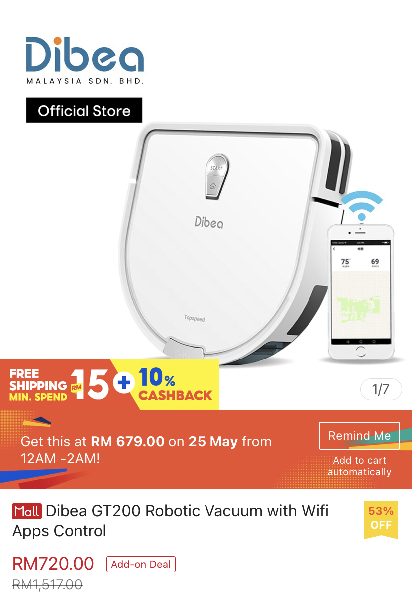 ▪ Dibea GT200 Robotic Vacuum with Wifi Apps Control – 原价RM1517