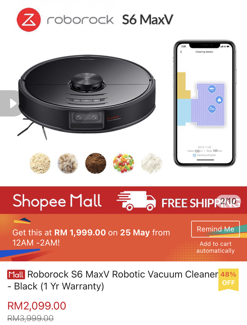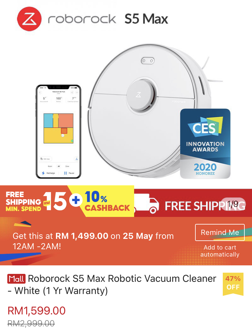 ▪ Roborock S5 Max Robotic Vacuum Cleaner – 原价RM2999