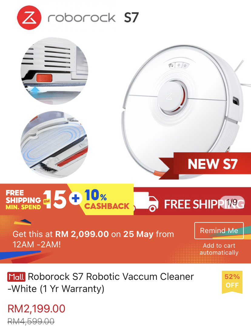 ▪ Roborock S7 Robotic Vaccum Cleaner – 原价RM4599