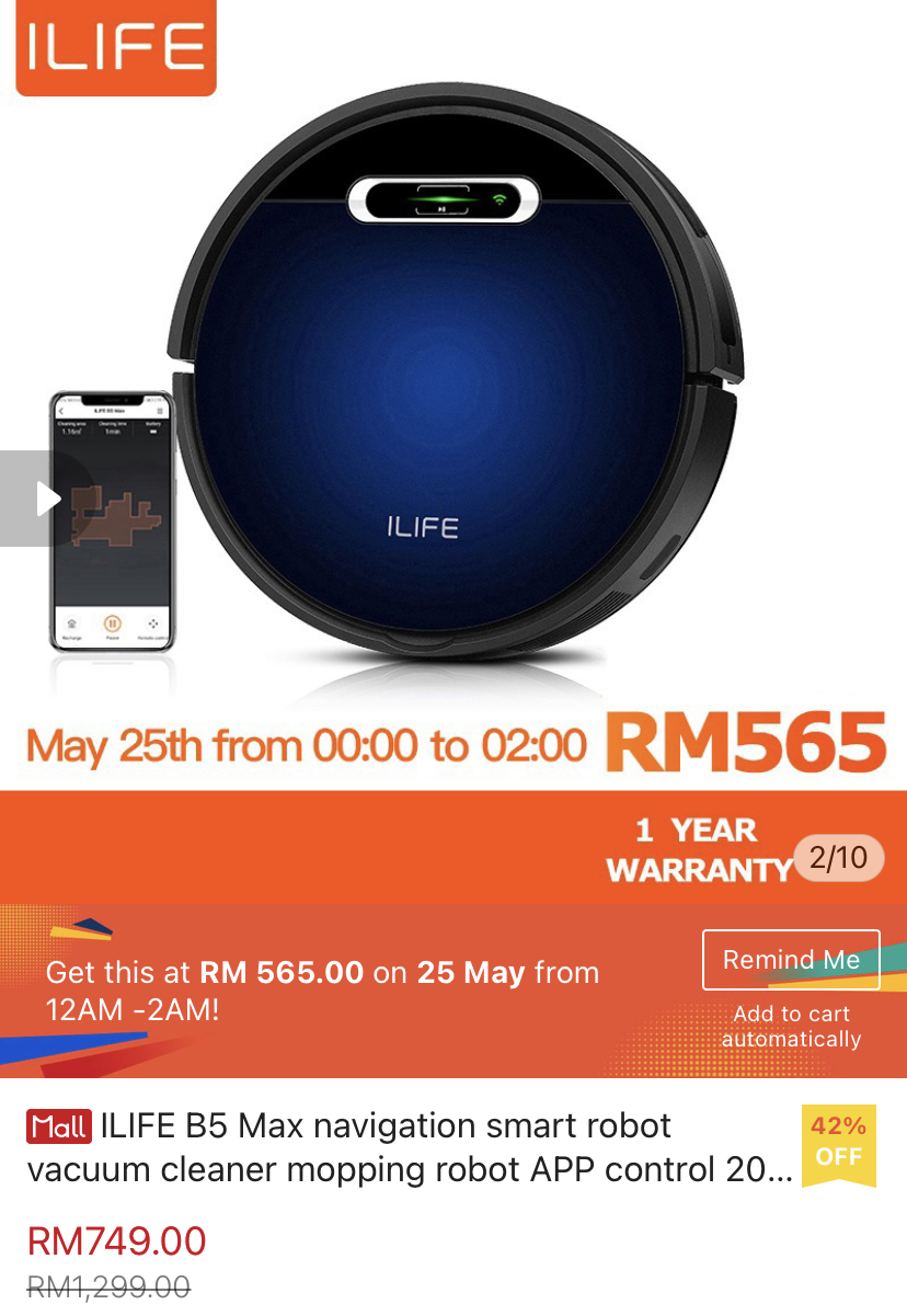 ▪ ILIFE B5 Max navigation smart robot vacuum cleaner – 原价RM1299