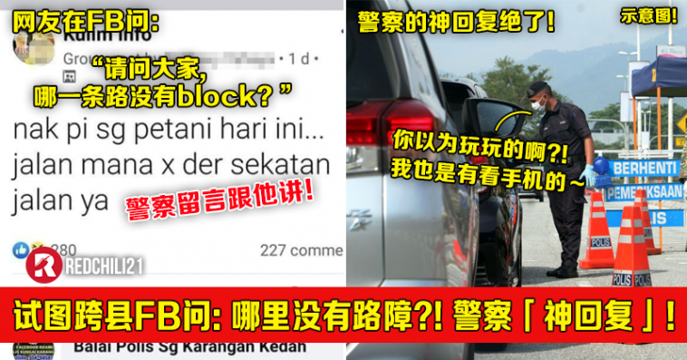 就像这名网友日前在脸书群组PO文求问,哪一个路段没有设路障,结果警察亲自留言给他解答!