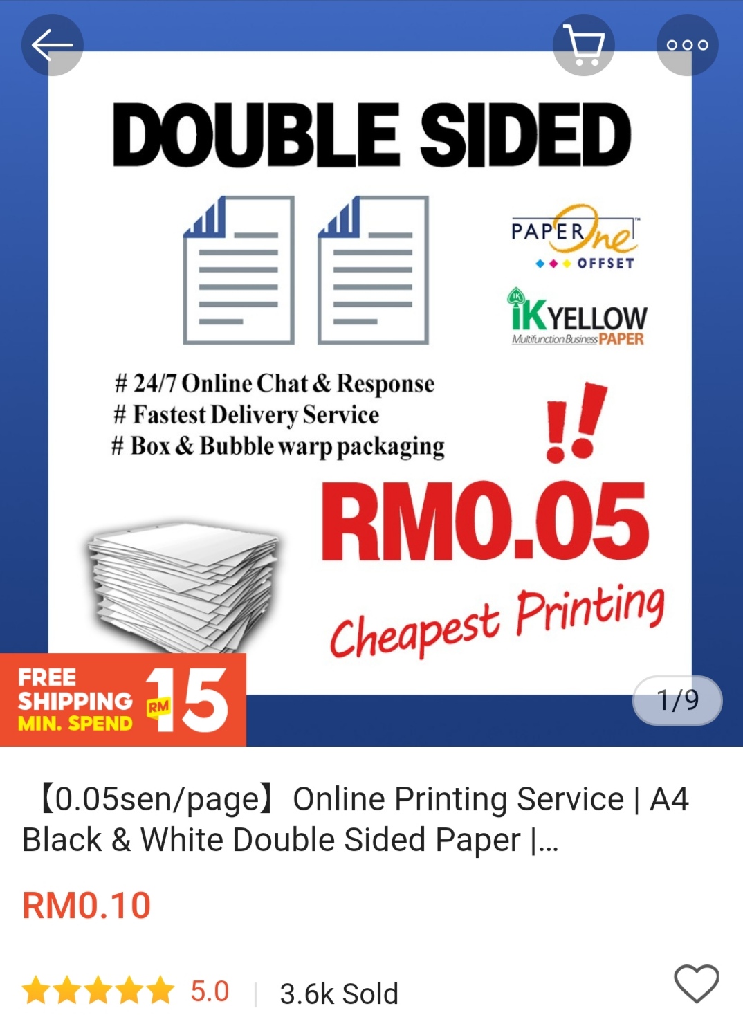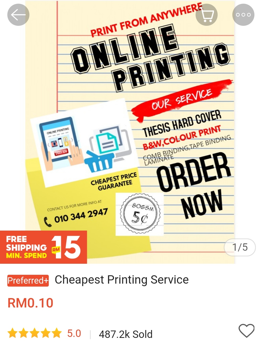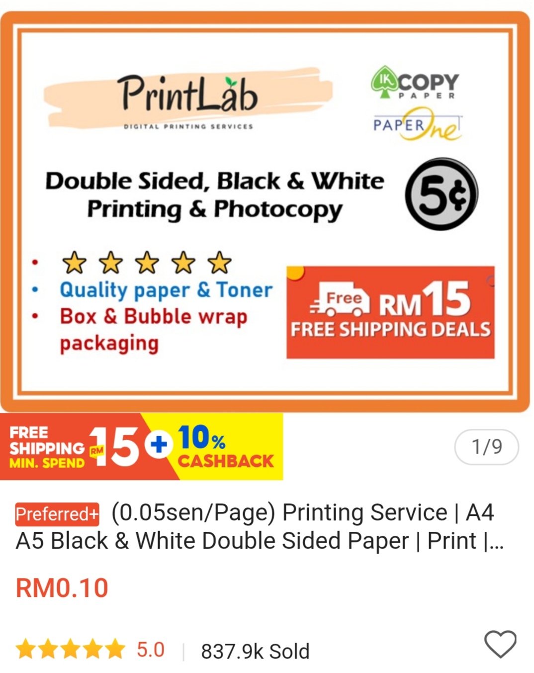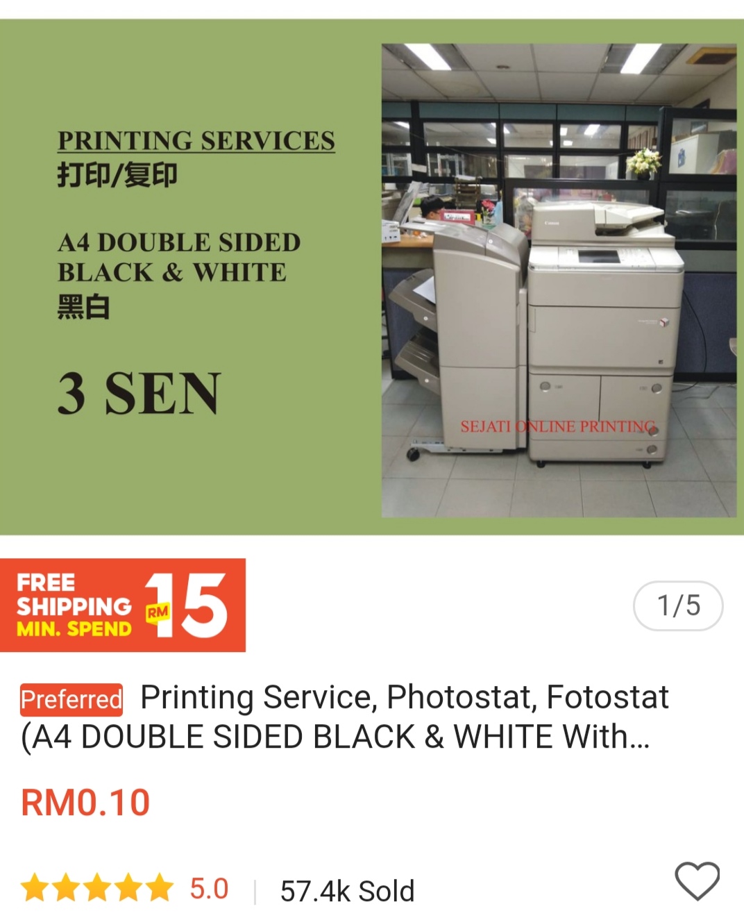 随着时代的步伐,许多实体店已经开始转向网络线上发展了!现在就连印刷店也在大马网购平台Shopee  进行线上交易!