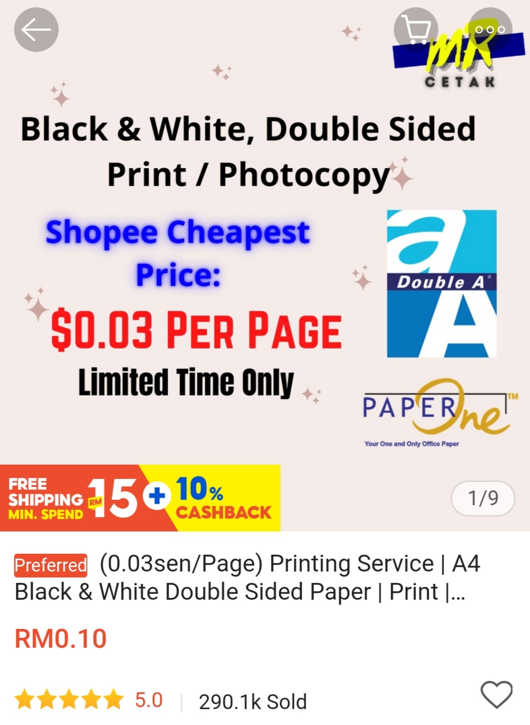 10. Mr.Cetak – Print & Photostat – RM0.30(1501张以上;双面)