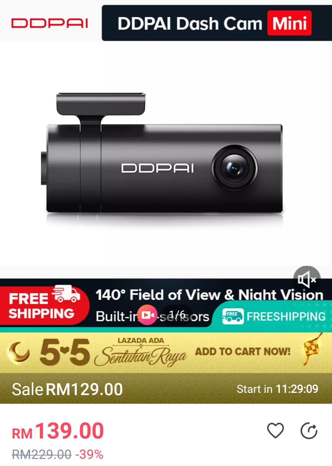 ▼④ DDPai Dash Cam Mini – RM229 RM129(5月5日优惠价)