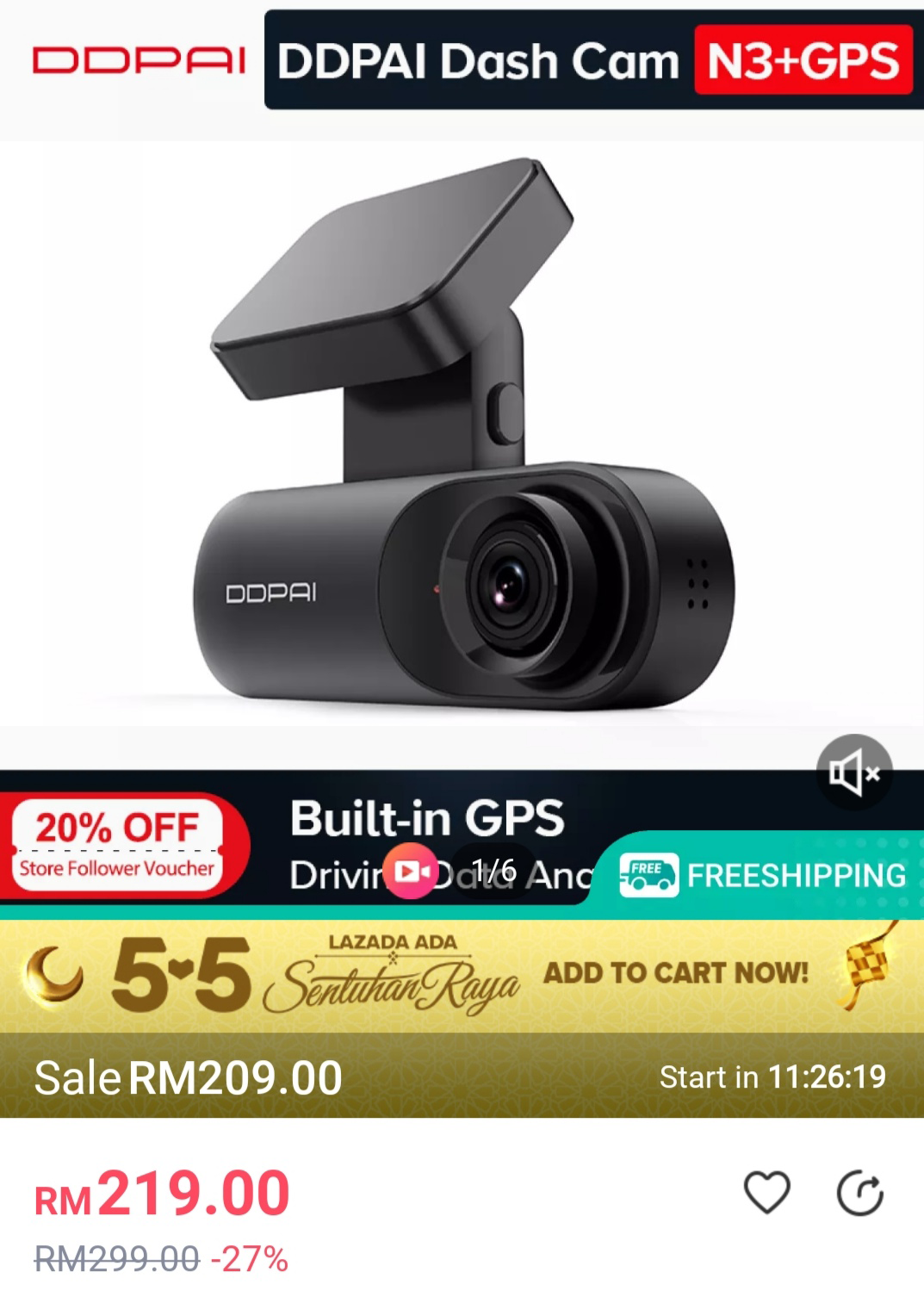 ▼⑤ DDPai Dash Cam Mola N3 Car Camera Recorder – RM299 RM209(5月5日优惠价)
