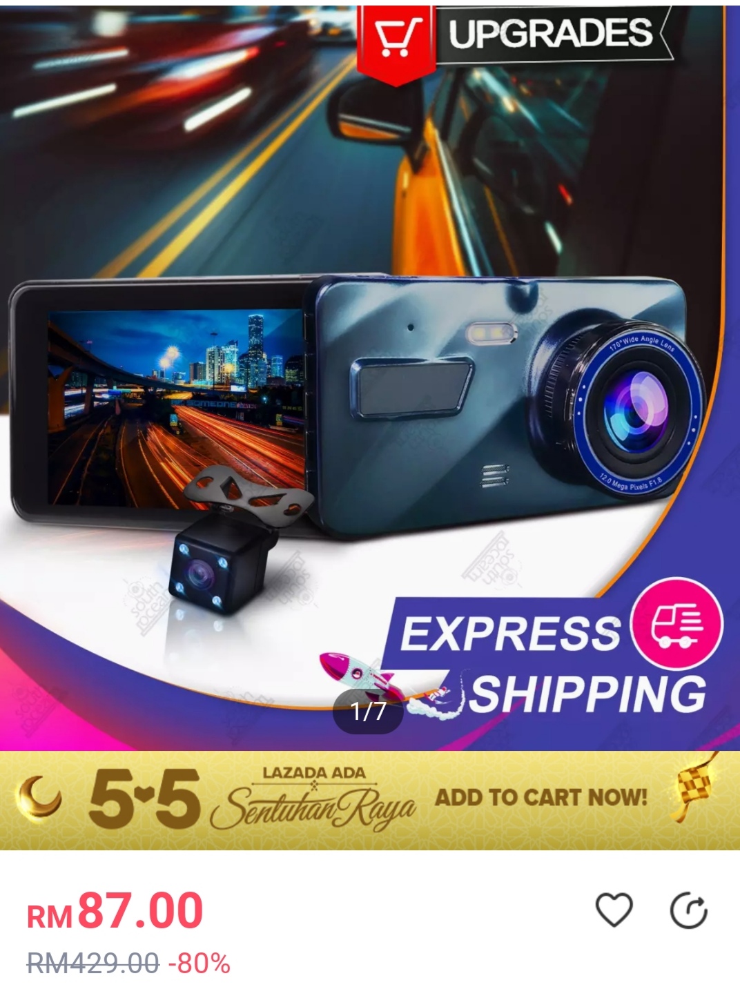 ▼⑨ Dual Lens Car Camera Dash Cam – RM429 RM87