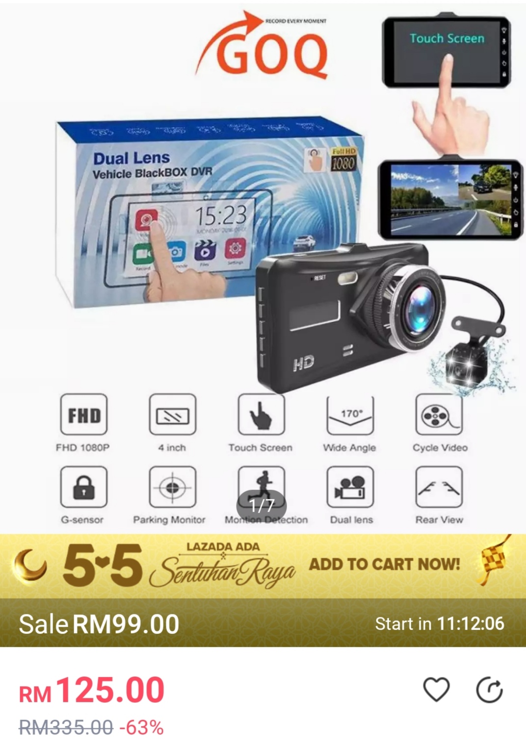▼⑩ GOQ D200 Touch Screen Dual Lens Front & Rear Car Dash Camera – RM335 RM99(5月5日优惠价)