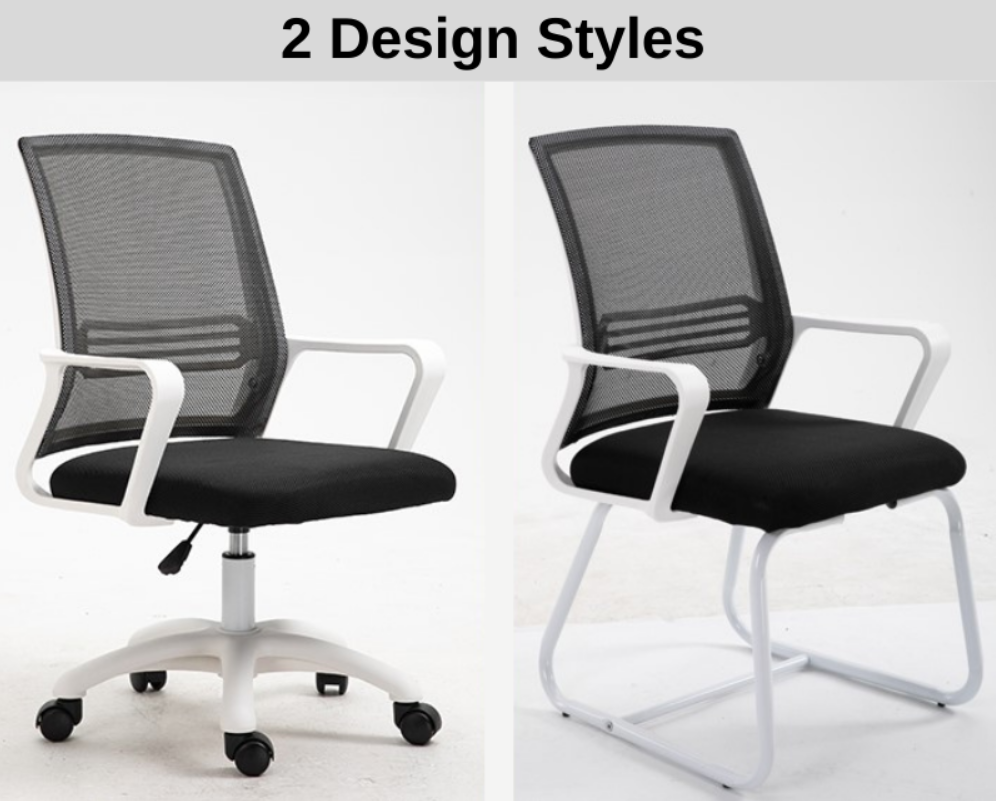 这款办公椅的靠背部分采用透气网状布质,不仅透气舒服还能够提供背部支撑,属于一款护腰脊的人体工学办公椅!办公椅的支脚有2种款式:旋转式和U型腿!