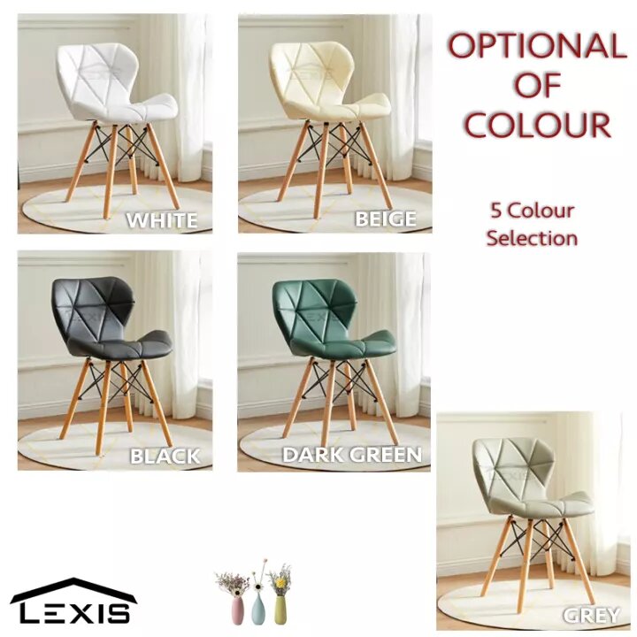 ⑥ Creative Curvy Eames Chair with Leather Cushion Seat & Solid Wood Leg Modern Style