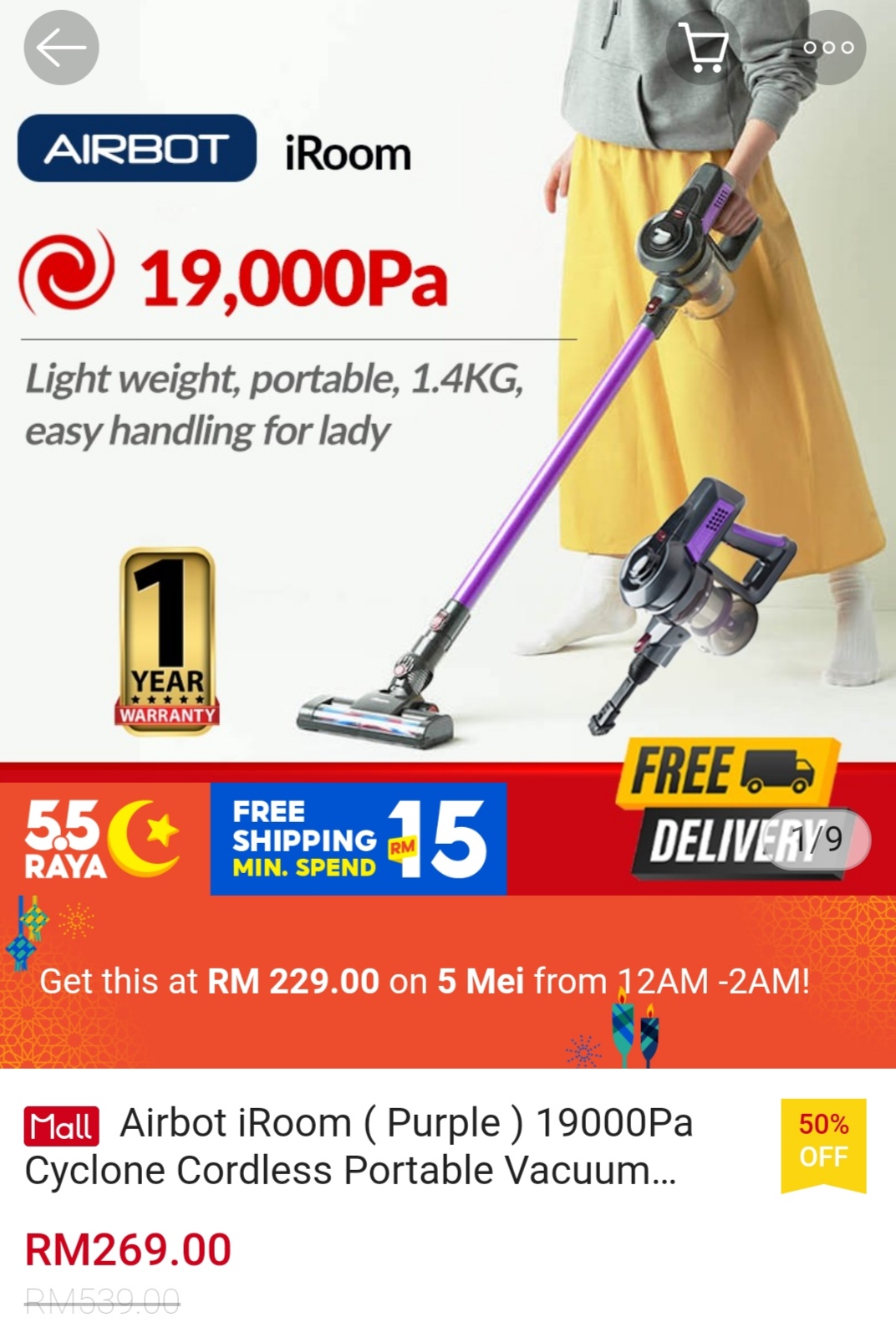 ▪ Airbot iRoom Cyclone Cordless Portable Car Vacuum Cleaner 19kPa – RM539 RM229【点击这里】