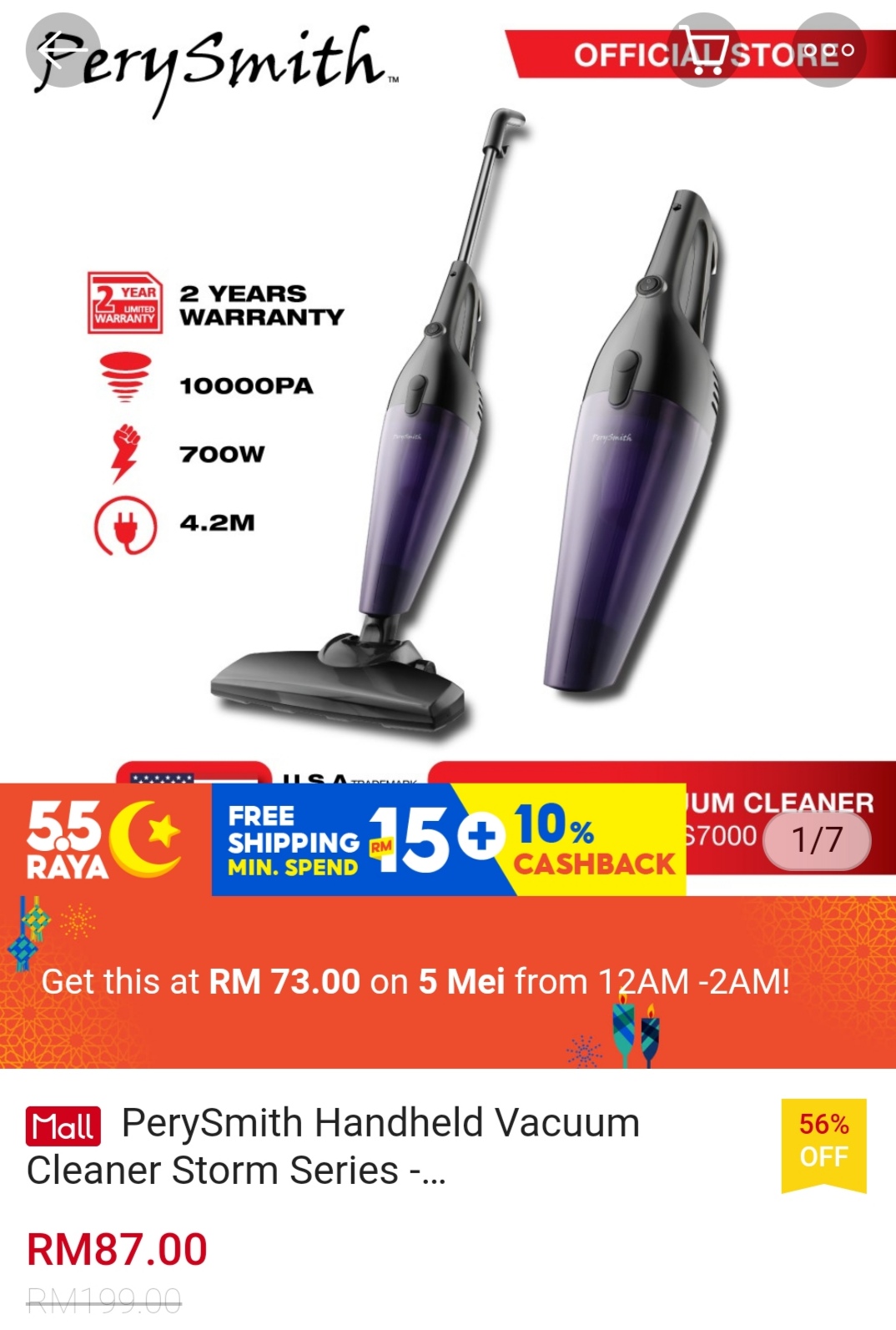 ▪ PerySmith Handheld Vacuum Cleaner Storm Series – Portable/HandStick/Bagless (700W) PS7000- RM199 RM73【点击这里】