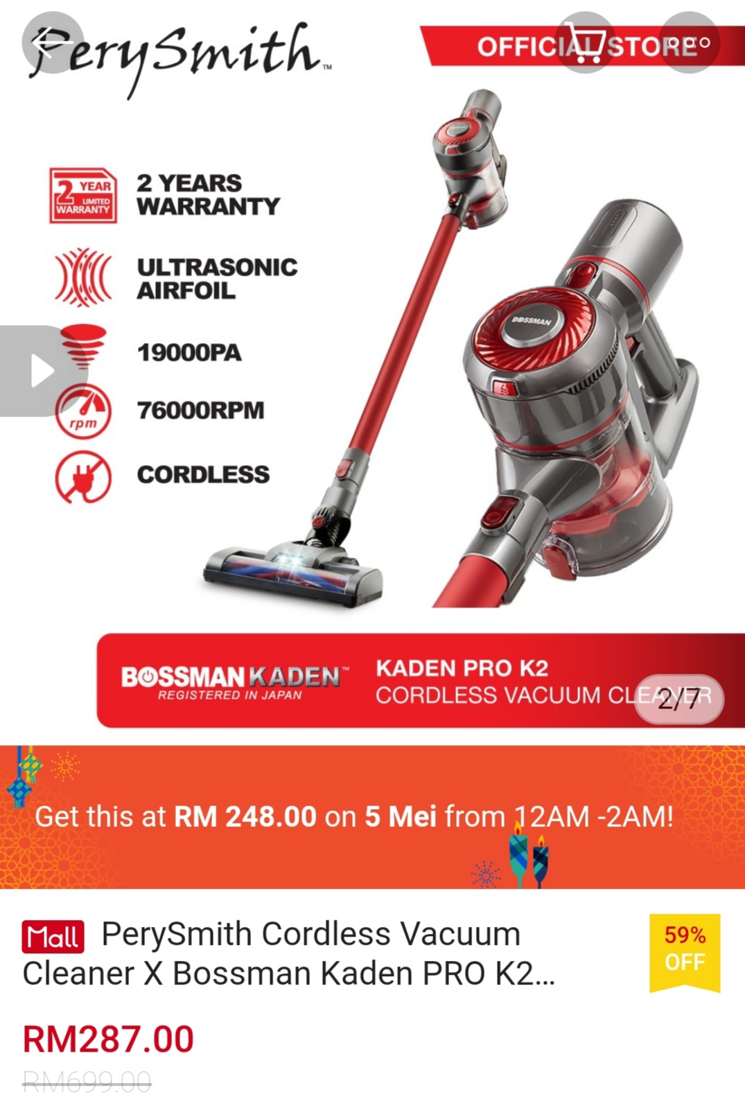 ▪ PerySmith Cordless Vacuum Cleaner X Bossman Kaden PRO K2 – RM699 RM248【点击这里】