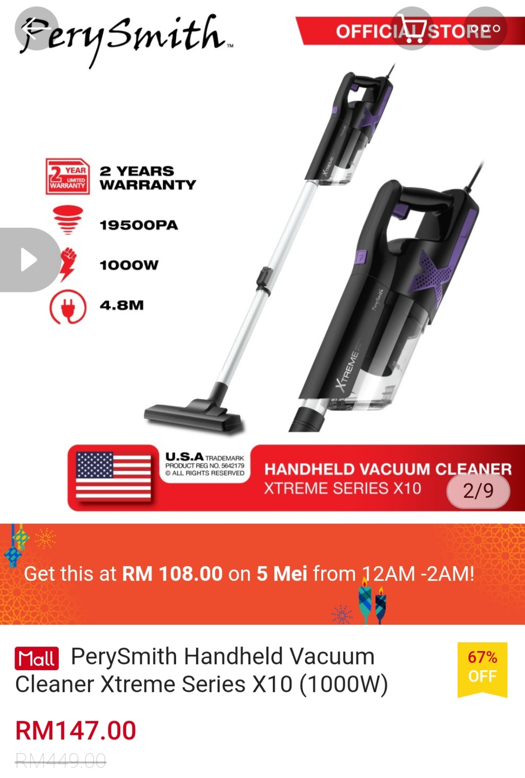 ▪ PerySmith Handheld Vacuum Cleaner Xtreme Series X10 (1000W) – RM449 RM108【点击这里】