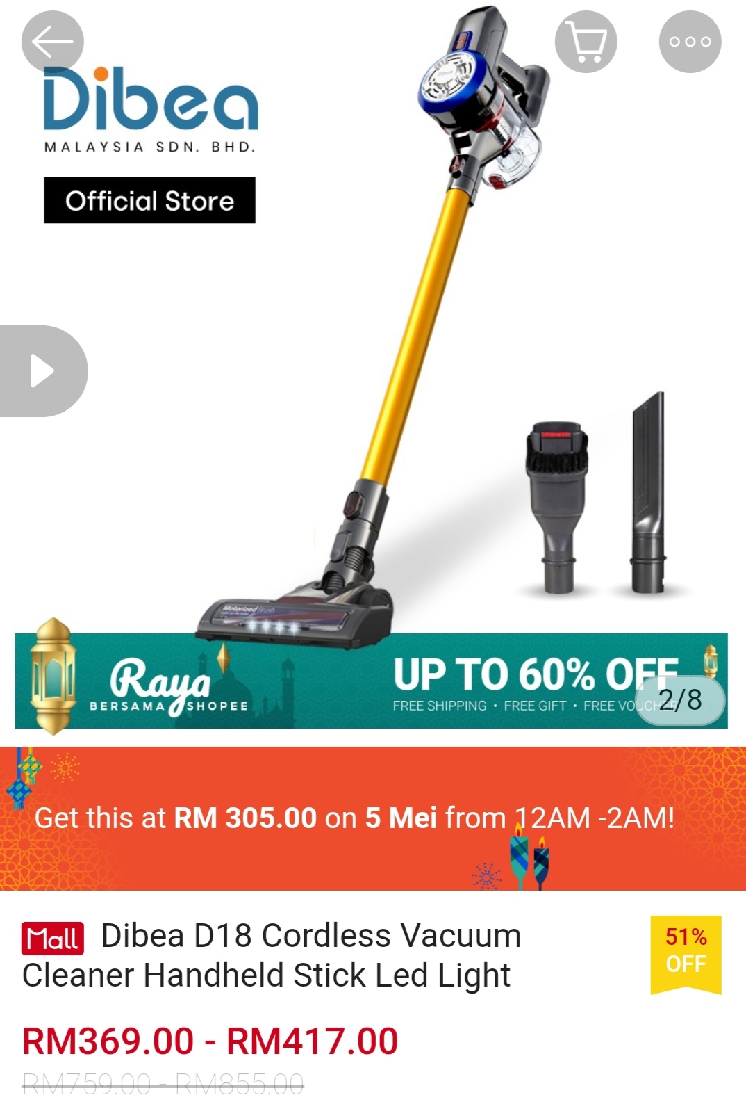 ▪ Dibea D18 Pro Cordless Vacuum Cleaner Handheld Stick Led Light – RM1,850 – RM1,899 RM578【点击这里】