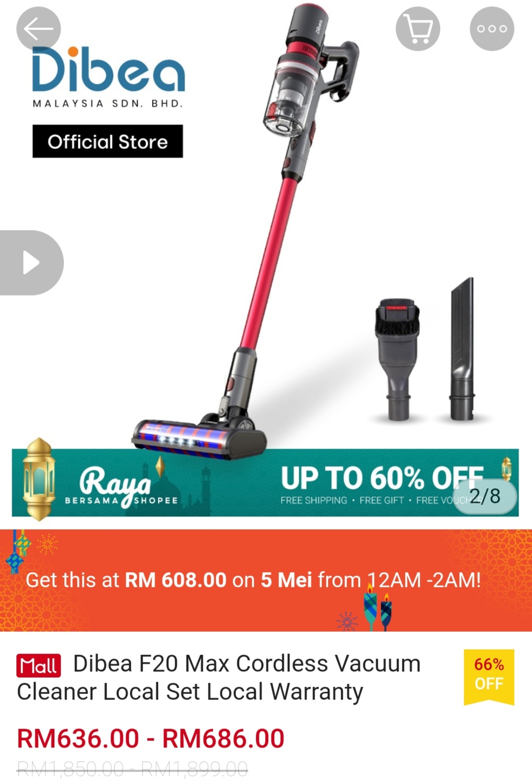 ▪ Dibea F20 Max Cordless Vacuum Cleaner Local Set Local Warranty – RM1850 – RM1899 RM608【点击这里】