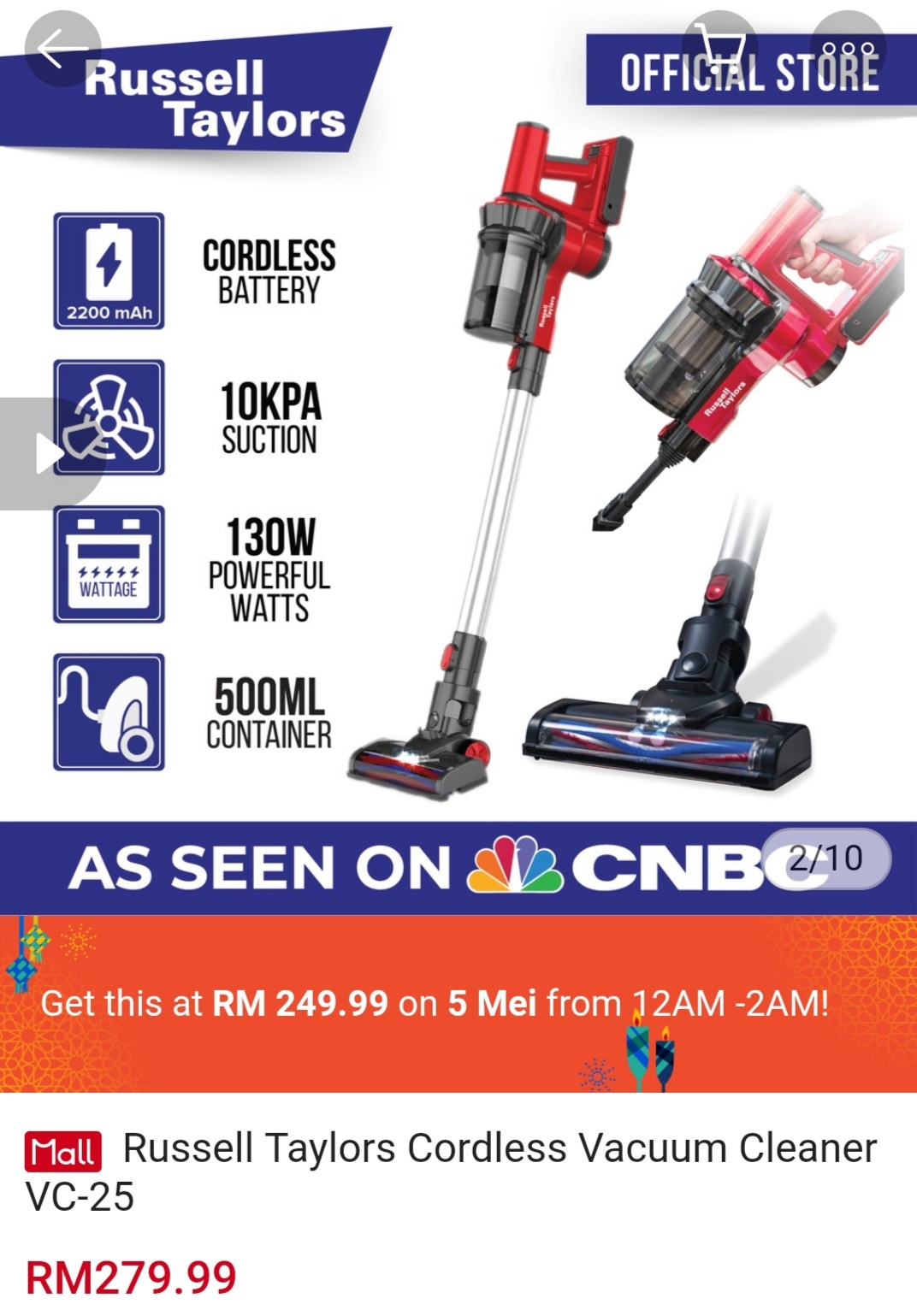 ▪ Russell Taylors Cordless Vacuum Cleaner VC-25 – RM279.99 RM249.99【点击这里】