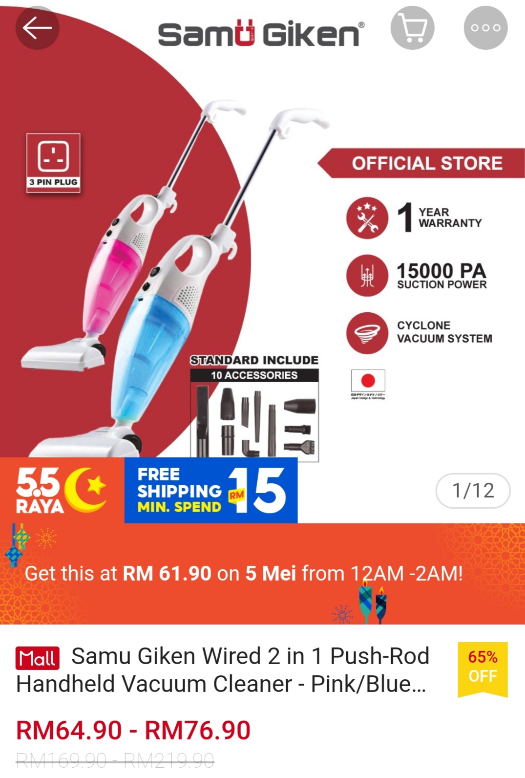 ▪ Samu Giken Upgraded 2 in 1 Push-Rod Handheld Vacuum Cleaner – Pink/Blue (600W) – RM169.90 – RM299.90 RM61.90【点击这里】