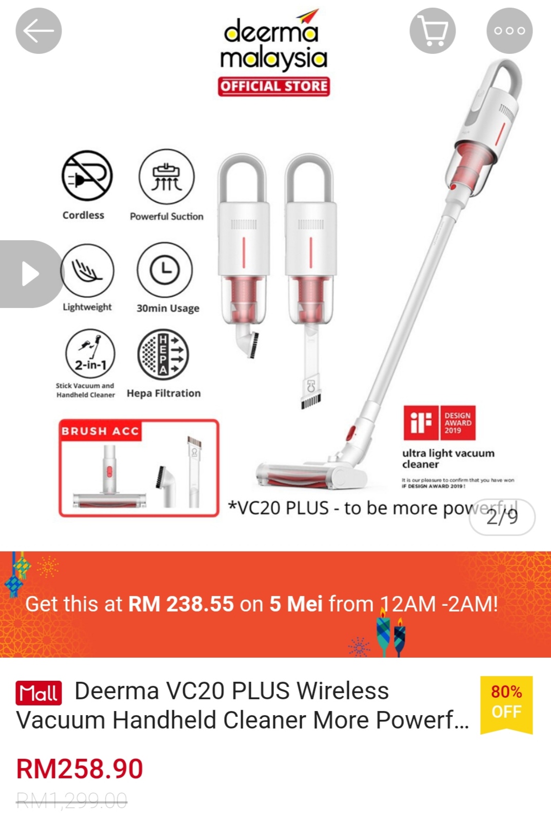 ▪ Deerma VC20 PLUS Wireless Vacuum Handheld Cleaner More Powerful Suction 2.0 Version – White – RM1299 RM238.55【点击这里】
