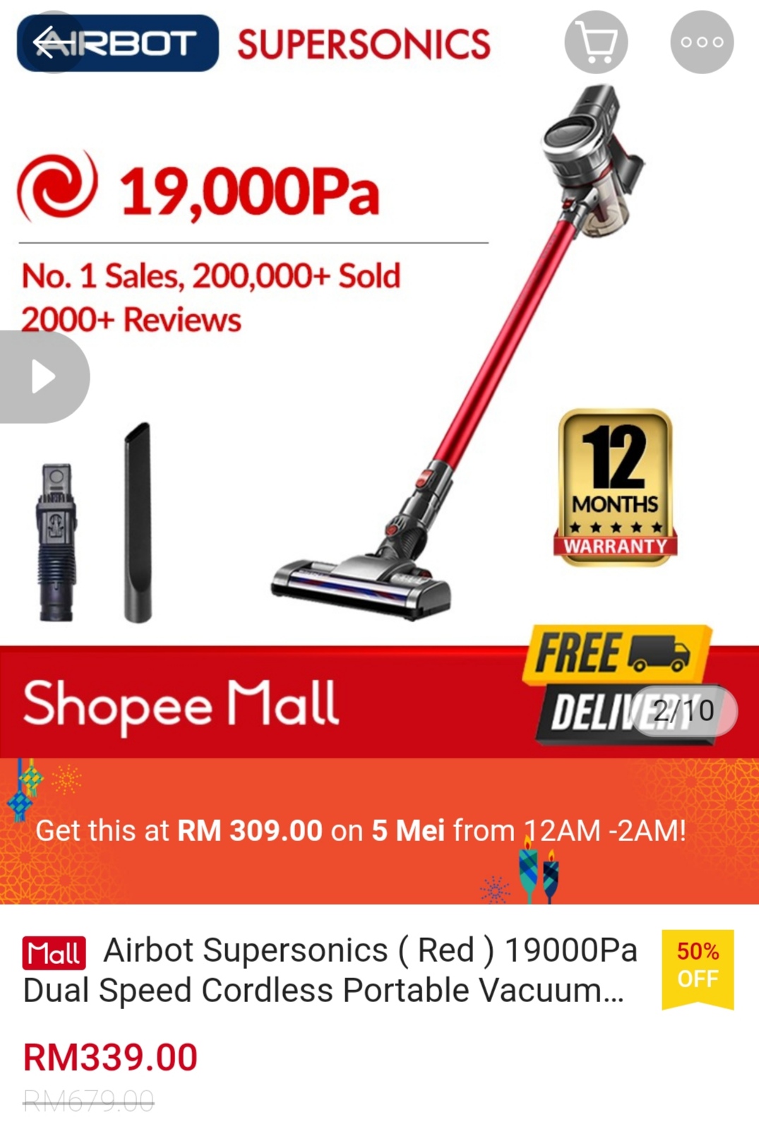 ▪ Airbot Supersonics Pro Cordless Vacuum Cleaner【12 Month Warranty】 – RM1199 RM399【点击这里】