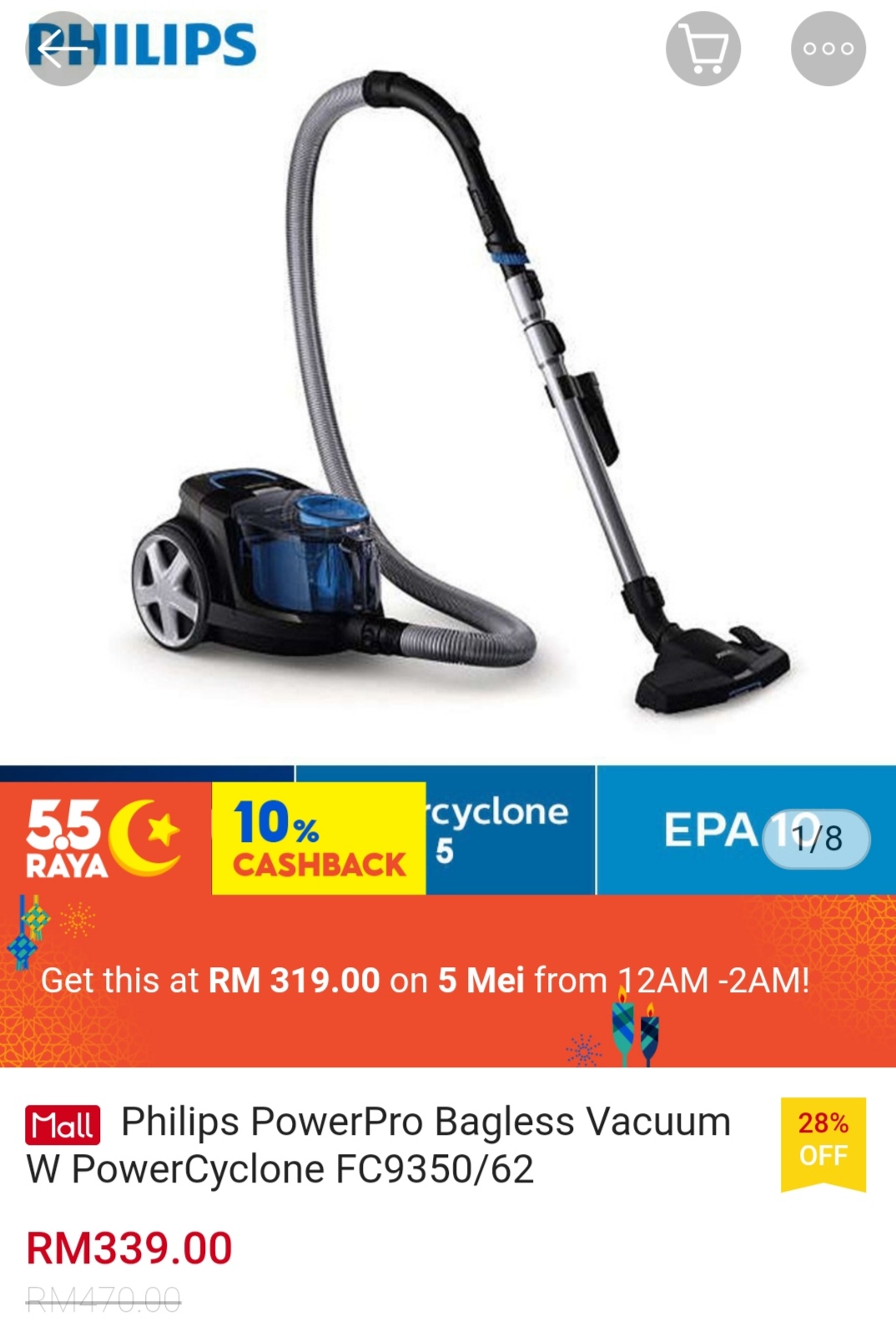 ▪ Philips PowerPro Bagless Vacuum W PowerCyclone FC9350/62 – RM470 RM319【点击这里】