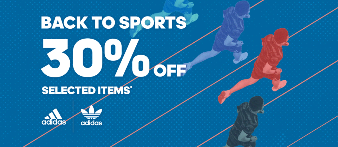 这项优惠是由Adidas 官方网店推出【Back To Sport】促销活动!商品高达55%折扣,另外再额外折扣30%给大家!无需输入任何优惠代码哦!