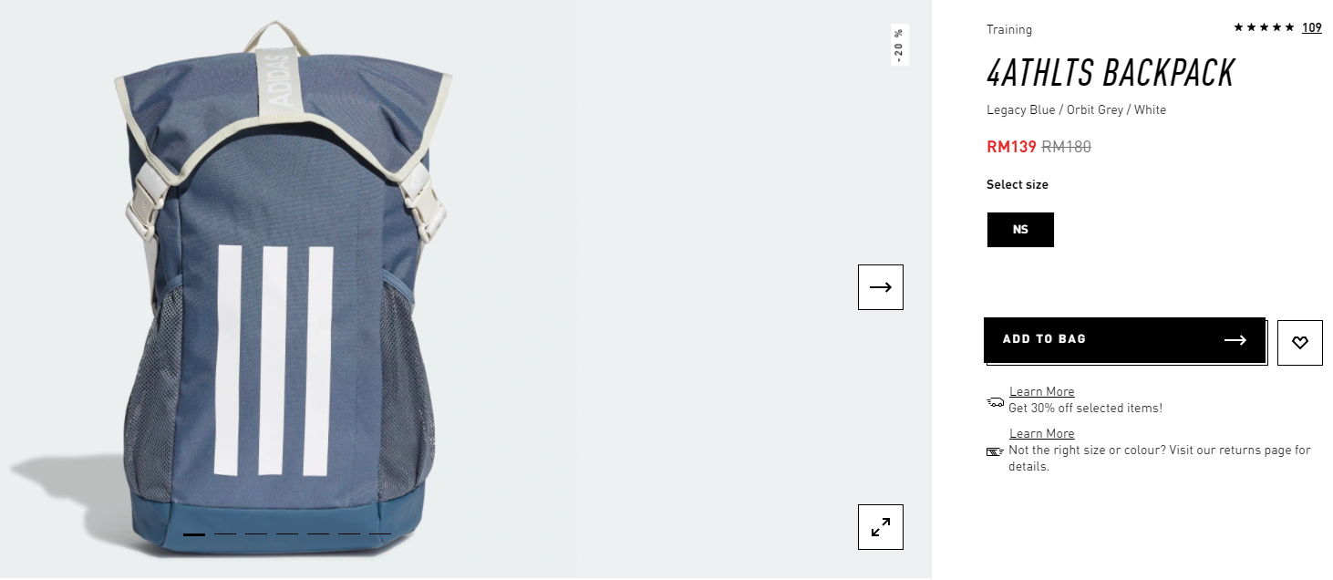 ※ 原价RM180 的背包,折扣20%+30%之后只需RM97.30!