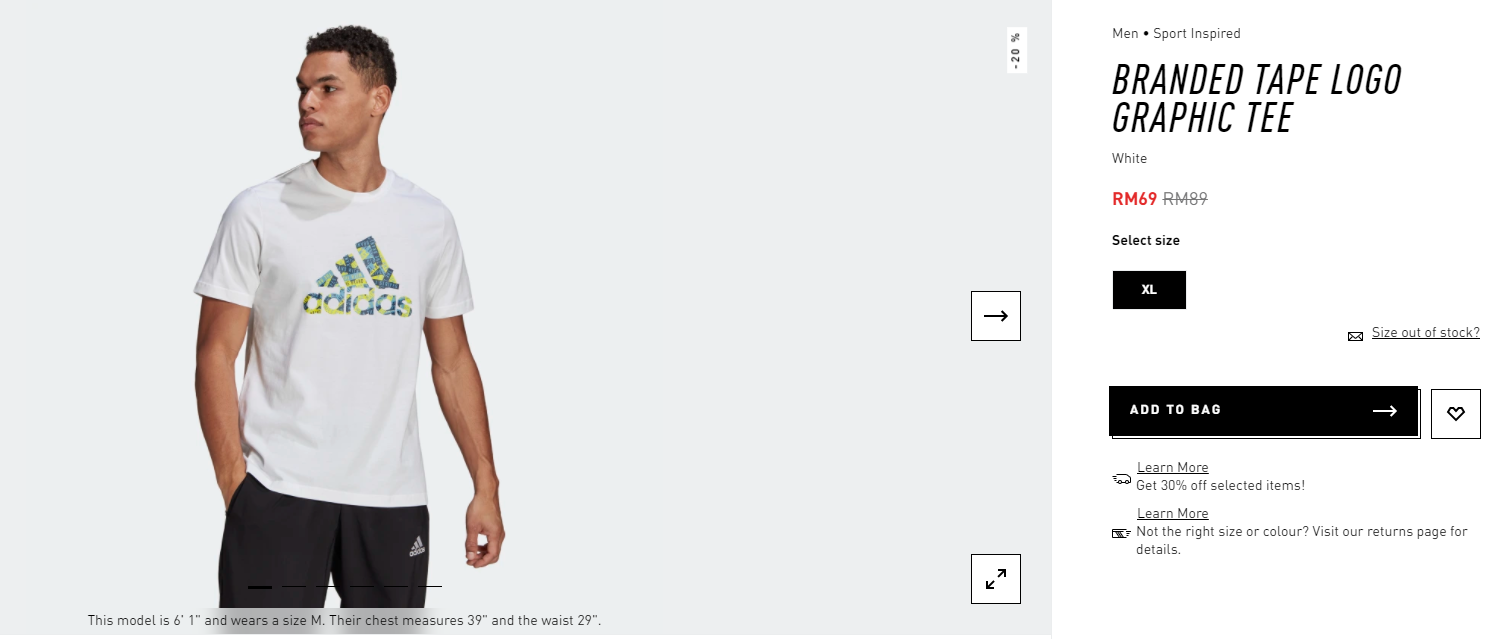 ※ 男装运动T恤原价RM89,折扣20%+30%之后只需RM48.30!
