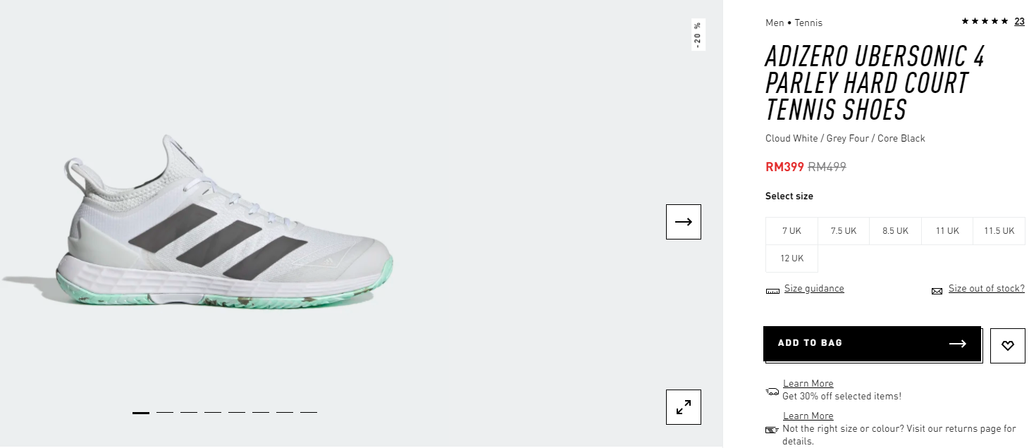 ▼ ADIZERO UBERSONIC 4 PARLEY HARD COURT TENNIS SHOES【折扣20%】- 只需RM399(原价RM499)