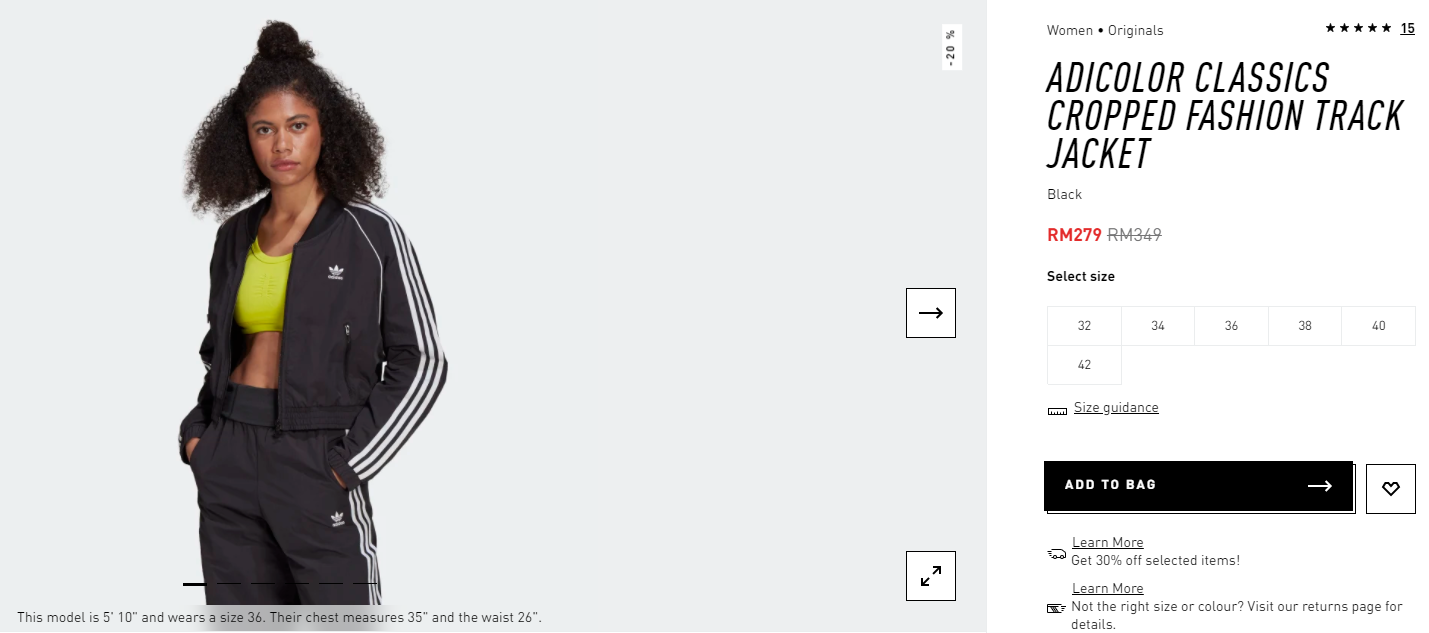 ▼ ADICOLOR CLASSICS CROPPED FASHION TRACK JACKET -【折扣20%】- 只需RM279(原价RM349)