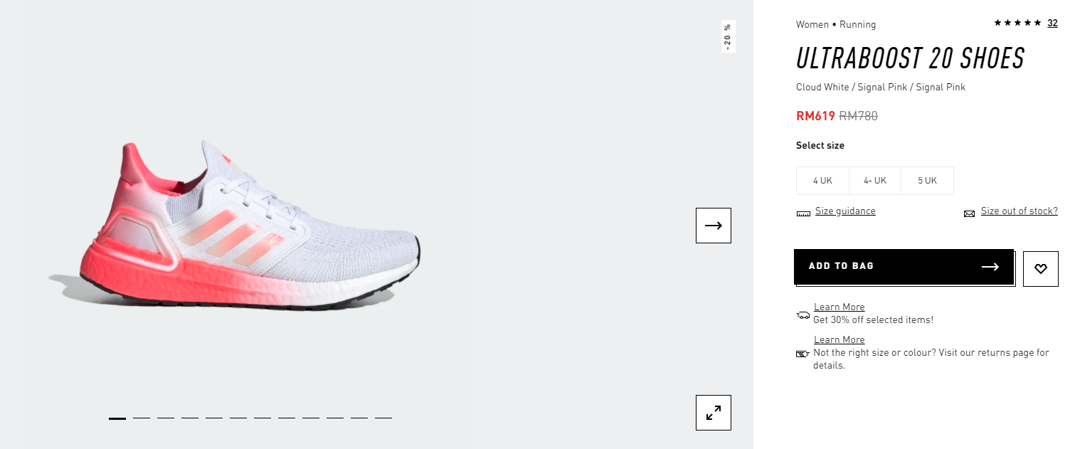▼ ULTRABOOST 20 SHOES【折扣25%】- 只需RM619(原价RM780)