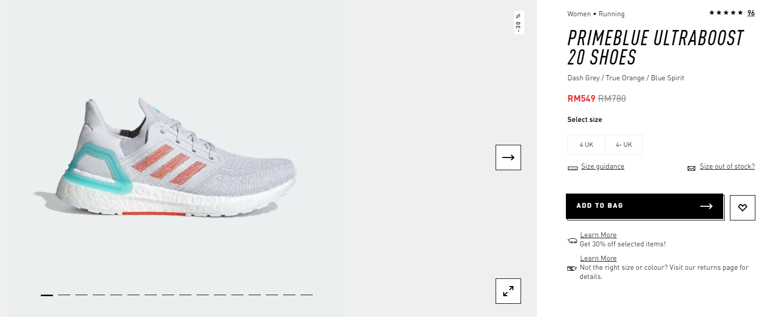 ▼ PRIMEBLUE ULTRABOOST 20 SHOES【折扣30%】- 只需RM549(原价RM780)