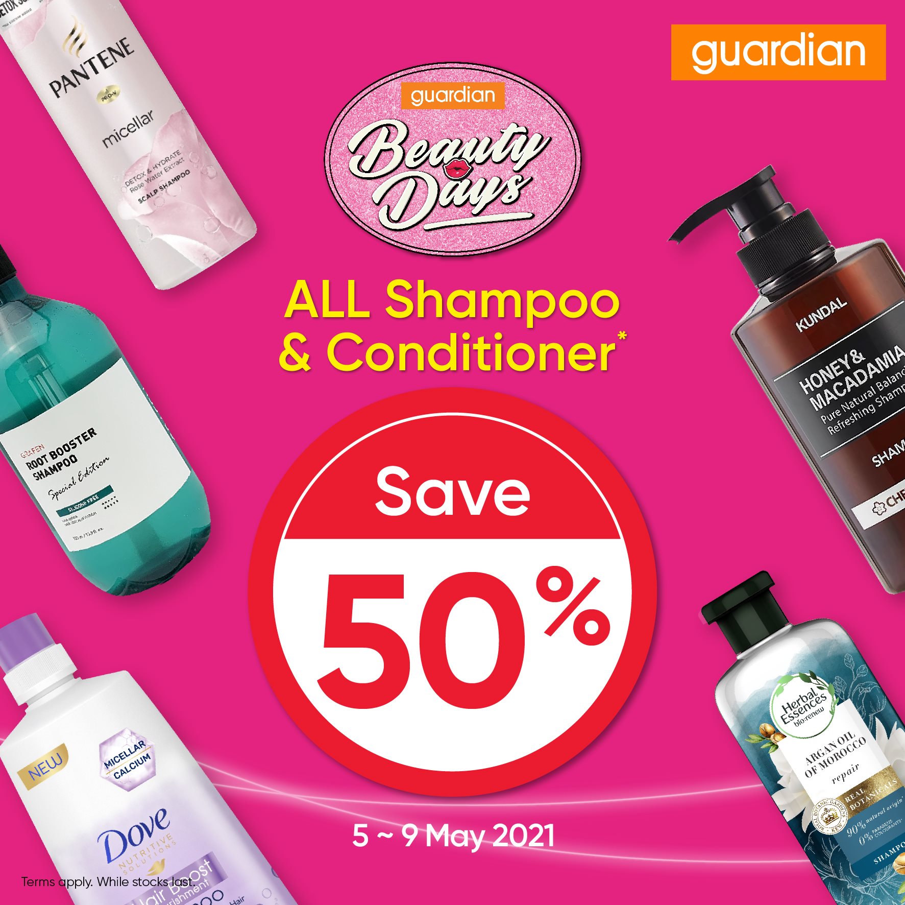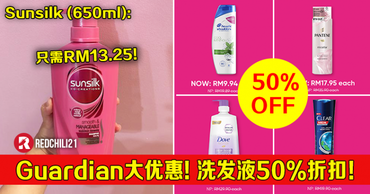 促销活动:Guardian —— 洗发液和护发素50%折扣!